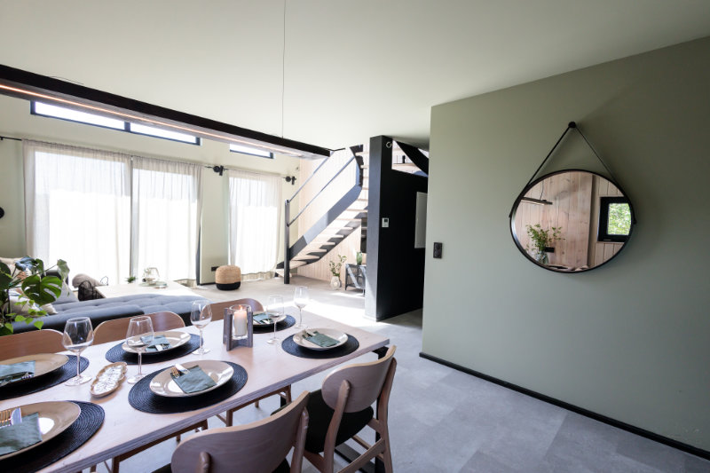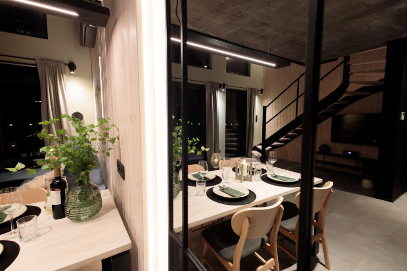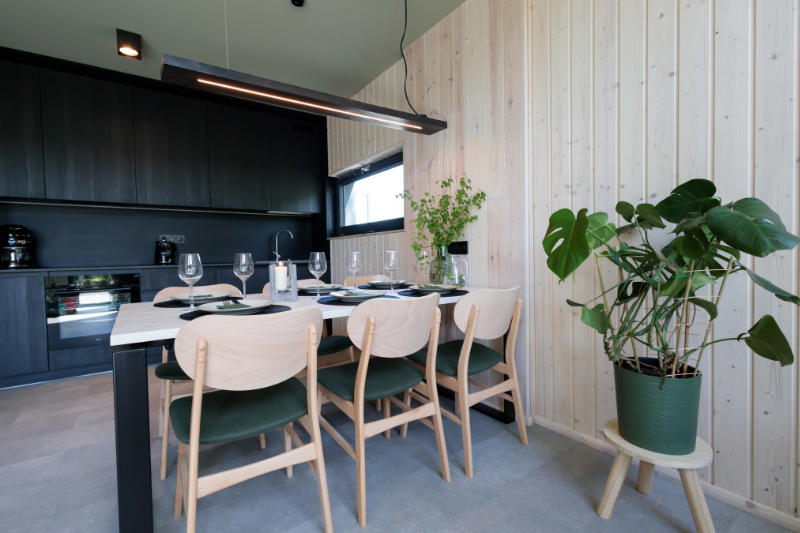 Domki Widać Wydmy to komfortowe i stylowe wnętrza, gdzie użyliśmy wysokiej jakości naturalnych materiałów wykończeniowych. Każdy detal został starannie przemyślany. Nasze domki są przestronne, pełne naturalnego światła i otoczone zielenią. We wnętrzu dominuje ciepły klimat drewna w połączeniu z nowoczesnymi, loftowymi elementami. Zadbaliśmy o każdy szczegół, by stworzyć wyjątkową atmosferę.